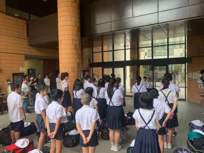 待ちに待った修学旅行!いよいよ出発です。出発式では2日間の心構えと、なすべき事の確認、そしてなによりも全員安全に帰ってくることを確認しました。子どもたちは元気よく学校を後にしました。