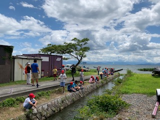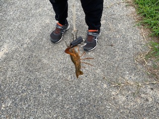 勾玉作りのあとは自由時間。一番人気はザリガニ釣り。みんないっぱい釣りました!