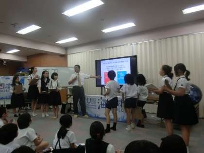5・6年生がSDGsについて学習をしました。持続可能な社会は、どのようにしたら築くことができるのか、二人のゲストティーチャーからの教えていただきました。