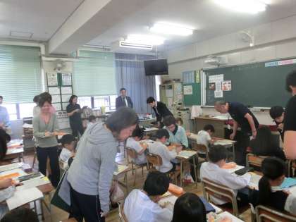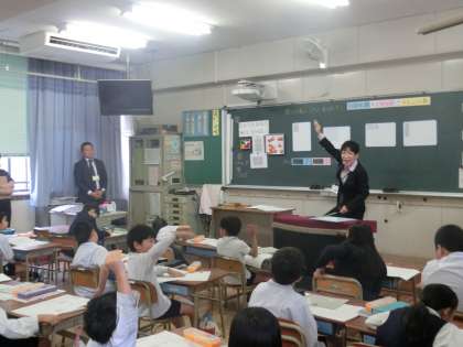 算数の授業研究会がありました。ブロックを使ったり、図に表したりしながら、かけ算の仕組みについて学習しました。