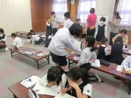 算数の授業研究がありました。小数の学習です。自分で考えたり、友だちと考えたりしながら、課題に取り組みました。