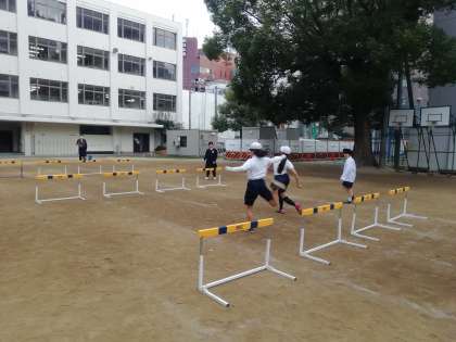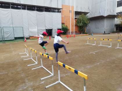 リズムよく、歩幅を変えながら、上手に跳びこせるように
