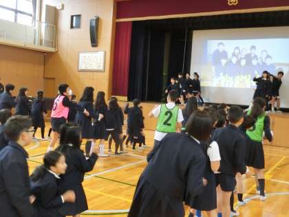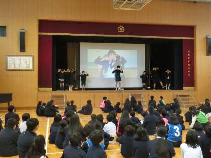 今年度の最後の集会委員会にによるわくわくタイムでした。いつも、楽しいゲームで盛り上げてくれました。