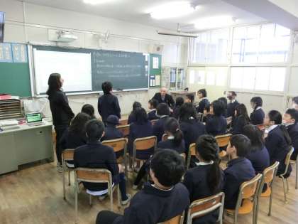 2月10日(月)3時間目、吉村さんをゲストに昔のミナミの町のお話を聞きました。