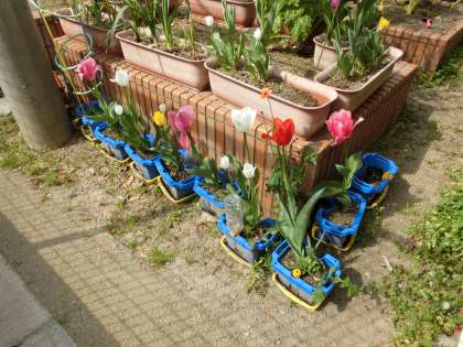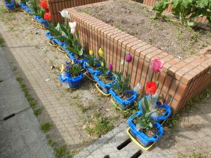 新2年生が1年生のときに植えた「チューリップ」が、きれいに咲きました。