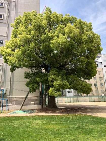 Q.みなみ しょうがっこうの うんどうじょうには、おおきな くすのきが あります。この くすのきの なまえは なんでしょう?