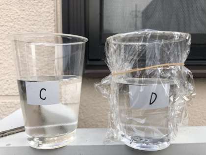 コップの 水の りょうが どうなったかを、 ワークシートに かいてみよう。