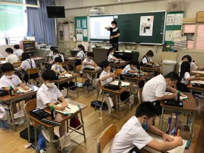 3年生からさまざまな学習が増えます。書写では、毛筆の学習がはじまりました。図画工作では、自分の絵の道具を使った学習がはじまりました。3年生の子どもたちは、わくわく学習を進め、作品を仕上げています。