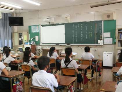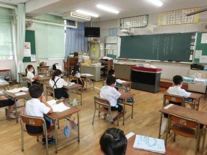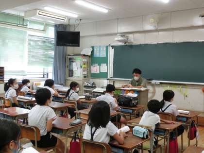 朝から、とても暑い日でしたので、放送で行いました。各教室で、校長先生のお話を聞きました。