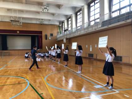 今回は、台風の接近により、大阪市全域に暴風警報が発令されたため、集団下校する際の避難訓練でした。本日は、3蜜を避け、地区別集団下校は実施せず、各教室での事前指導と高学年による集団下校のシュミレーションを講堂で実施しました。