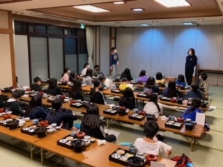 夕食のあと、今日の学習の振り返りをしました。子どもたちから学んだことを発表してもらいました。それぞれ平和について考えを深めることができました。