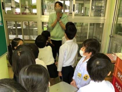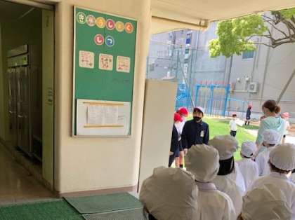 4月中は、毎日、管理作業員さんが1年生の教室まで給食を運んでくださっていました。今日からは、1年生の子どもたちが自分たちで給食を運びます。「いただきます!」「食器が重いです。」「「手が痛いです。」「蓋が落ちそうです。」「ごちそうさまでした!」…給食当番、頑張ります!