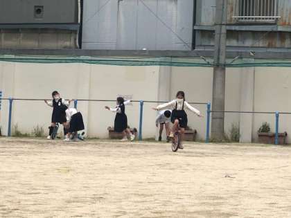休憩時間は、ソーシャル・ディスタンスを保ち友達と遊んでいます。