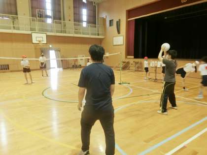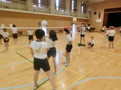 残念なことに、今日予定していたプールが雨で中止になりました。そのかわり、体育科の学習で「バレーボール」をしました。先生も一緒になって、汗をかきました。