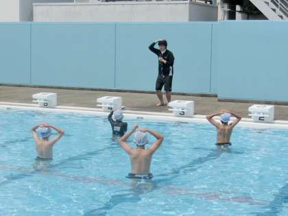 やっとプールに入ることができました。雨が続き、中止になっていましたが、今日は天気に恵まれました。子どもたちは、2年ぶりのプールを楽しむことができました。
