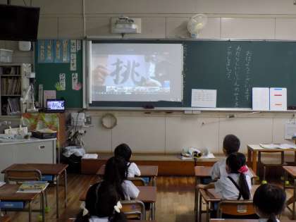 始業式を、オンラインで実施しました。子どもたちは、スクリーンに映っている校長先生の話を聞き、2学期を頑張ろうとする気持ちをもつことができました。