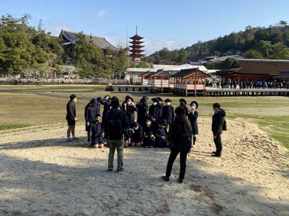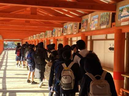 厳島神社を抜け、卒業アルバム用のクラス写真記念撮影です。
