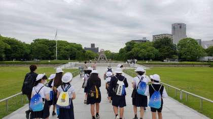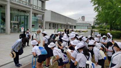 平和記念公園で、フィールドワークが始まりました。いろいろな碑を見てまわります。