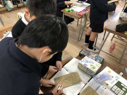 じしゃくと鉄の間に、だんボールを入れて実験をしました。