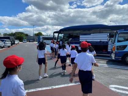 5年生の自然教室、琵琶湖青少年の家に向けて出発しました。