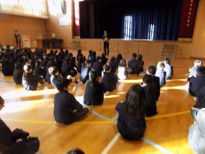 校長先生のお話、日本語教室修了式、冬休みの生活についてなどのお話がありました。