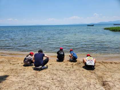 湖畔を散策したりザリガニ釣りをしたりして、琵琶湖の自然を楽しみました。