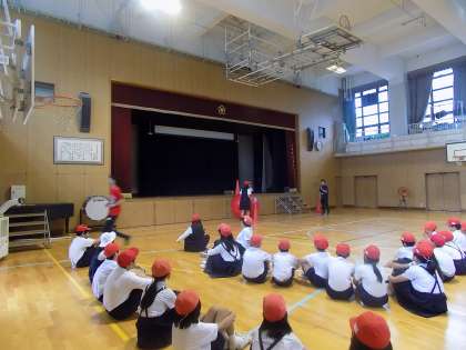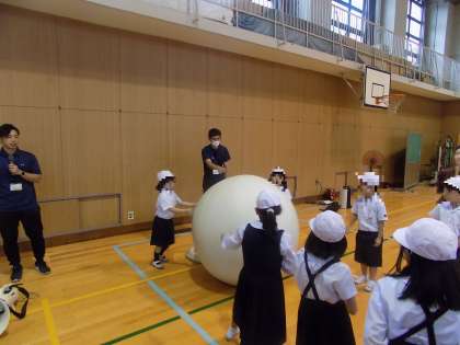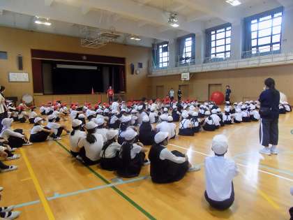 10月4日金曜日の1時間目は運動会に向けて、全校競技の「みんなで大玉送り」の練習を行いました。1から6年生みんなで楽しく取り組みました。