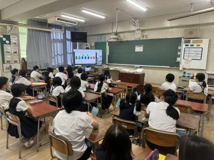 図書委員会の児童が、本の読み聞かせを行い、本の内容のクイズを出しました。
