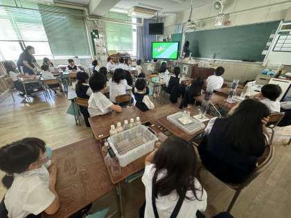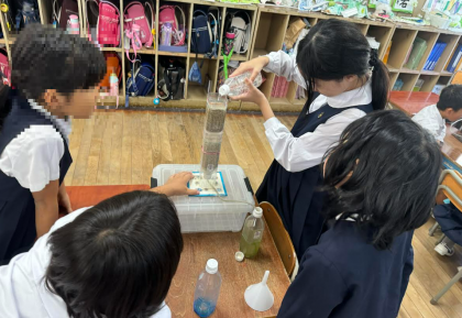 大阪市の水を届けていることや安全に飲める水を作っていることなどについて学習しました。また、ろ過の実験を通して、きれいな水を作りました。