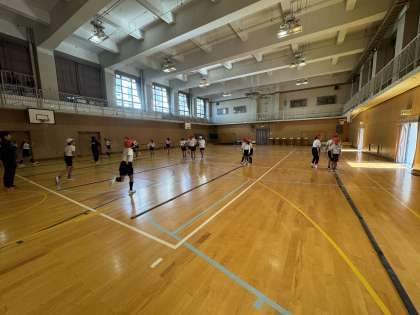 11月25日(月)に、子ども体力向上支援事業がありました。講堂で、リズム遊びをしました。最後には、みんなで楽しく「唱」のダンスを踊りました。とても楽しそうな様子でした。