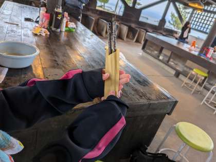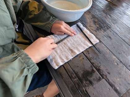 いっしょうけんめいお箸を削って、世界に一つだけのお箸を作りました。