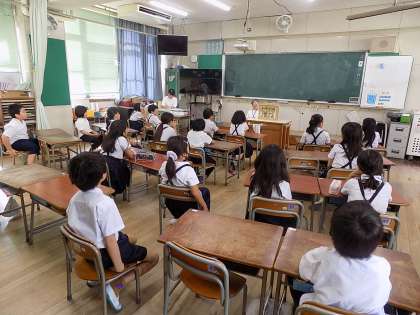 9月9日(火)に朝読みがありました。お話Qの会の方に来ていただき、それぞれの学年で本を読んでくださいました。
