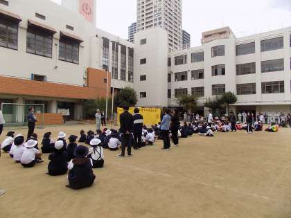 10月26日(土)に土曜参観がありました。全学年の児童が、地域防災訓練に参加しました。