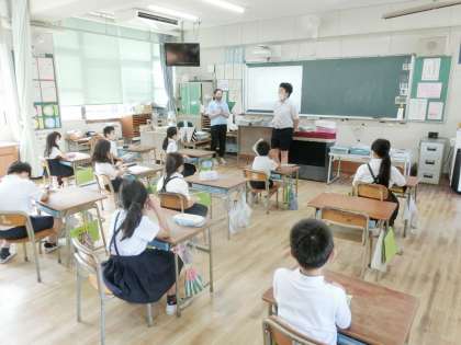 今年度、はじめてのプール学習をおこないました。2年ぶりのプール学習でした。少し緊張している様子も見られましたが、先生の話をしっかり聞くことで、充実した学習になりました。
