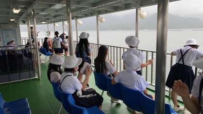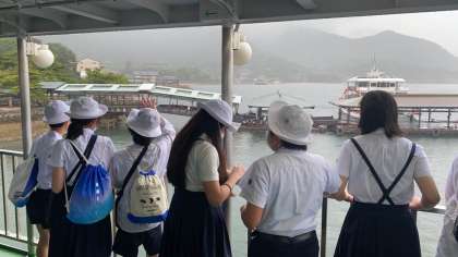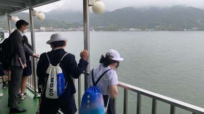 お世話になった、広島の宿、相生の皆さんにお礼のあいさつです。広島市を離れて、今日は宮島へ向けて出発です。