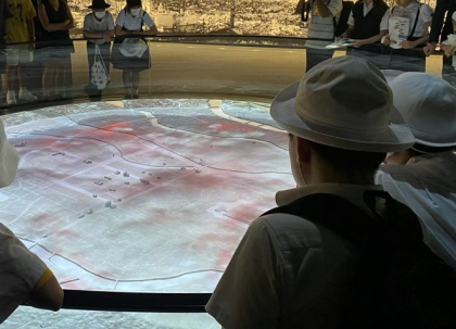 資料館の見学です。みんな入ってすぐのプロジェクションマッピングに釘付けです。
