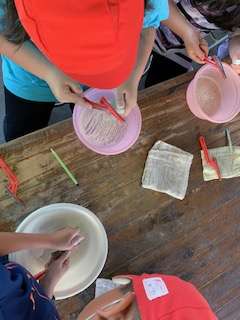 勾玉作りのあとは自由時間。一番人気はザリガニ釣り。みんないっぱい釣りました!