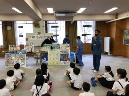 13日(月)、大阪市環境局の方に来ていただき、パッカー車体験を行いました。社会科で学習している「くらしとごみ」について、さわったり、実物を見たりして、わかりやすく教えてもらいました。ごみの分別や3Rなど、自分たちの生活にいかすヒントをもらいました。