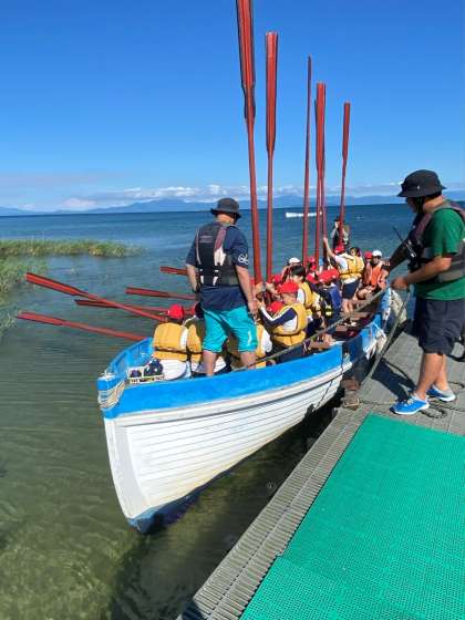 櫂を持って、さっそうと出ていく子どもたち。 -