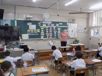 玉造小学校の栄養教諭の喜多先生に来ていただき、栄養の授業をしていただきました。今日のめあては、「食べ物の名前を知ろう」でした。毎日食べている給食も、いろいろな食べ物がたくさんでていることを知りました。これからも、好ききらいせず、たくさん食べてくださいね。