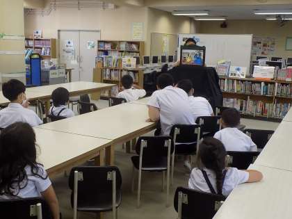 参加している児童は楽しそうに紙芝居に見入っていました。 -