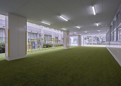 本校は3686平方メートルという狭隘な校地であるため、運動場をできるだけ広くとるために、