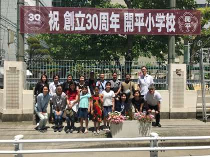 お休みの日にもかかわらず、創立30周年記念事業推進委員会の皆さんで設置しました。暑い中、ご苦労さまでした。