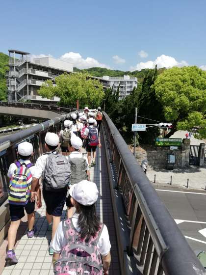 須磨離宮公園につきました。移動で少し疲れた様子もありましたが、青空と遠くに見えた海の景色で歓声も上がっていました。