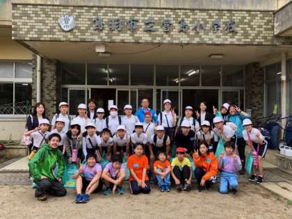 菅島小学校の玄関前での記念写真!