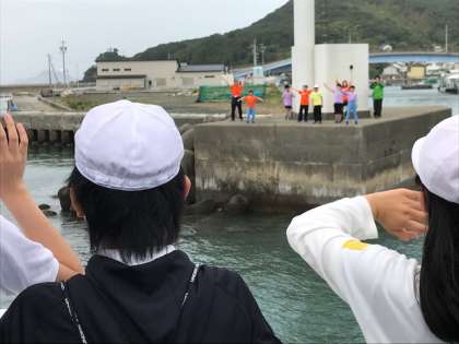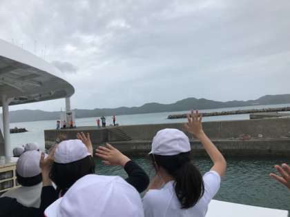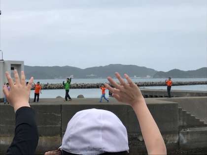 名残はつきません。いよいよお別れです。短い時間でしたが、とても仲良くなりました。菅島小学校の皆さん、ほんとうにありがとう!