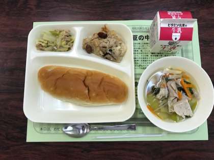 本日、給食試食会が開催されました。メニューは、金時豆の中華おこわ、中華スープ、ツナと野菜のオイスターソース炒め、おさつパン、牛乳でした。30名の保護者の皆様にご参加いただきました。今日の給食についての感想や小学生の時の給食の思い出、日頃、子ども達から聞いている給食の話などで盛り上がり、楽しいひと時を過ごしました。給食参観も行われ、うれしくていつも以上にもりもり食べたり、少し緊張してしまったりと、子ども達の反応は様々でした。本日まで長い間準備をしてくださったPTA給食委員会の皆様、ご参加いただいた保護者の皆様、本当にありがとうございました。