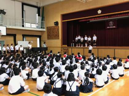来週6月11日(火)は、楽しみにしている「ワクワクフェスティバル」です。今朝は、各班から出し物の案内がありました。