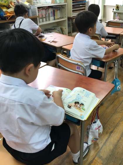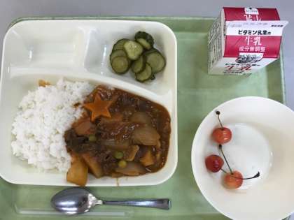 今日の給食のハヤシライスにはラッキーにんじんが入っていました。さくらんぼもおいしく、大人気でした。1年生は、給食を食べ終わった人から、本を読んだり、折り紙を折ったりと、立ち歩かず、食後に休養するために出来ることを考え実践しています。食後の過ごし方を工夫するのも給食時間で学ぶことの一つです。