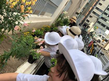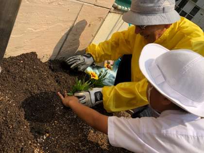 2年生生活科の学習の一環で、開援隊のみなさまと一緒に、花の苗を植えました。優しく苗を植える方法を教えていただきました。